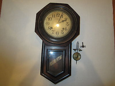 Title (ebay affiliate link): ANTIQUE WALL REGULATOR CLOCK 8 DAY, TIME AND STRIKE, KEY WIND