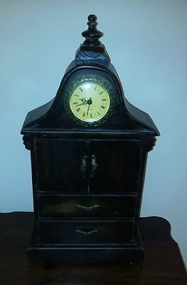 Vintage Antique Jewelry box drawers clock good shape dark brown
