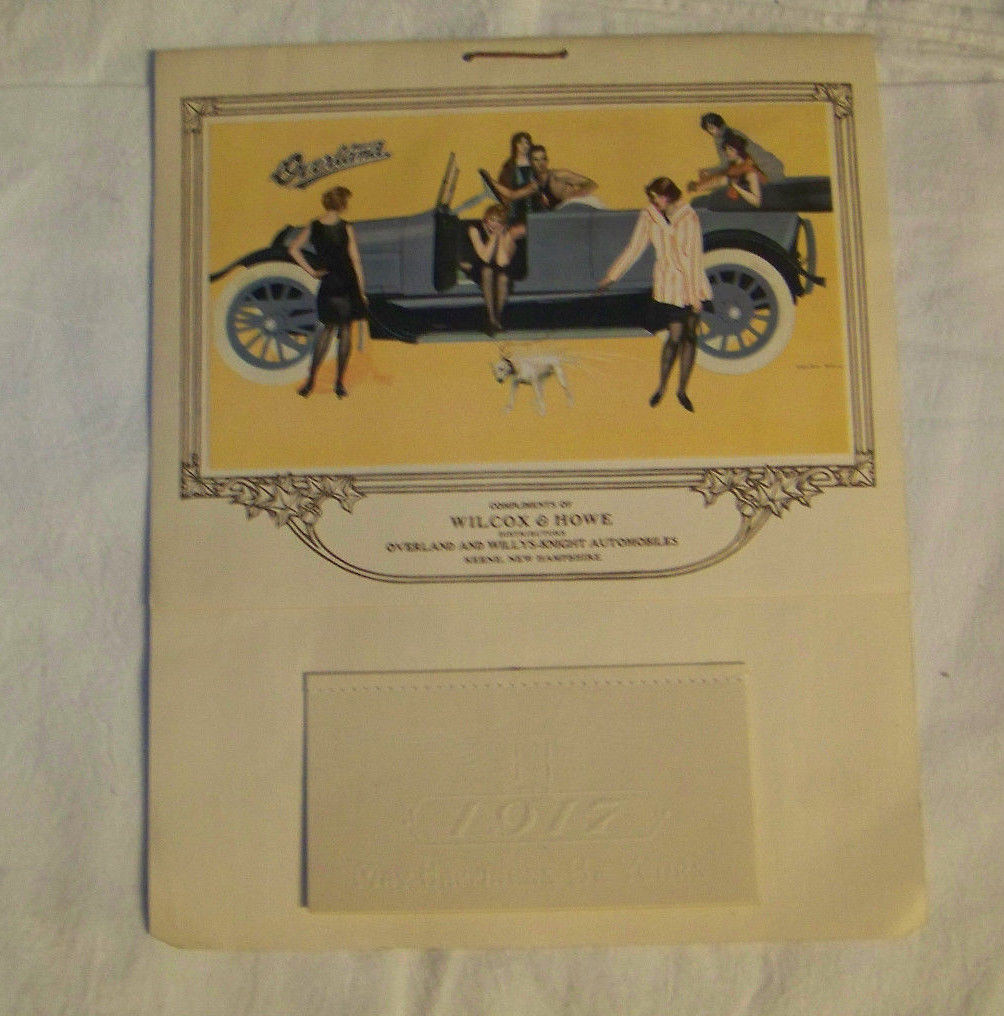 Antique 1917 Overland Automobile Calendar Willys-Knight Speedways Car Care