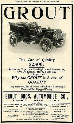 Title (ebay affiliate link): 1906 GROUT CAR GROUT BROS. AUTOMOBILE CO. ORANGE MASS. AD MOLINE TOURING CAR AD