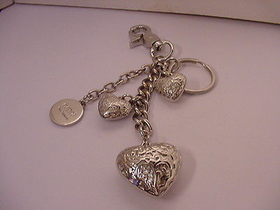 VTG KATHY VAN ZEELAND TEXTURED TRIPLE HEART SILVER TONE KEY CHAIN PURSE CHARM
