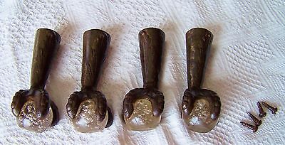 4 Old Cast Iron Eagle Claw Feet Glass Balls Piano Stool 4" Tall