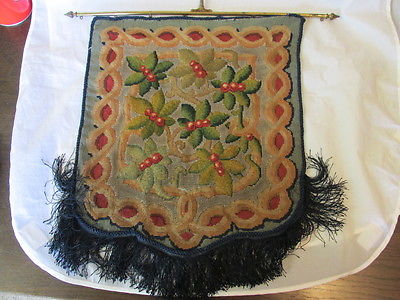 Title (ebay affiliate link): VICTORIAN WOOLWORK & BEADED POLE SCREEN PANEL + BRASS RAIL
