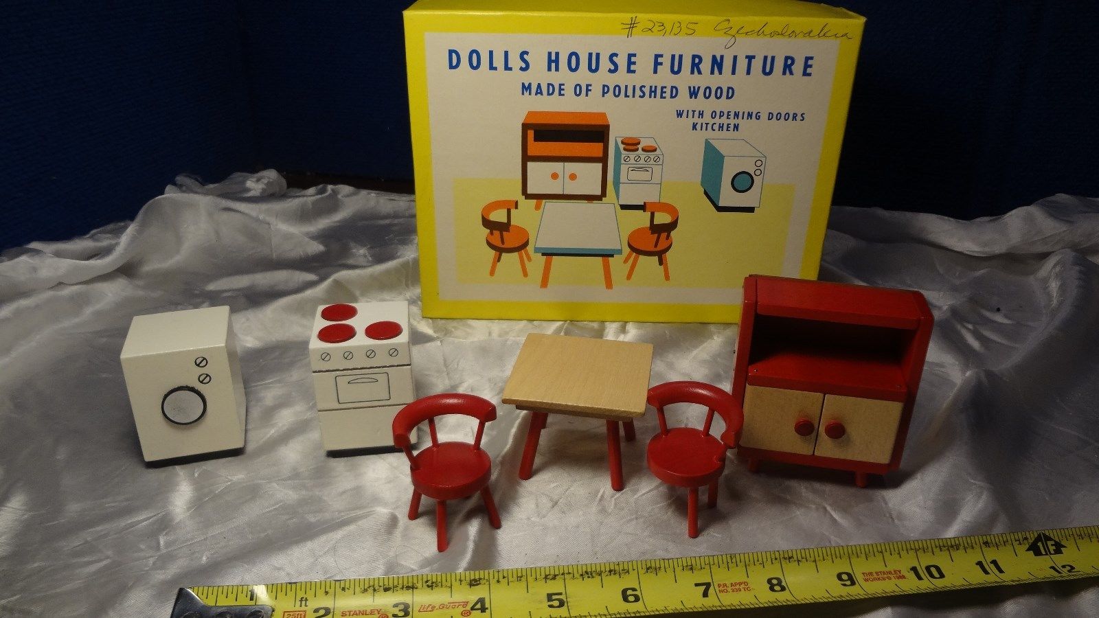 Title (ebay affiliate link): **MID-CENTURY MODERN** Vintage Doll House Furniture Wood Antique Toy Group #2