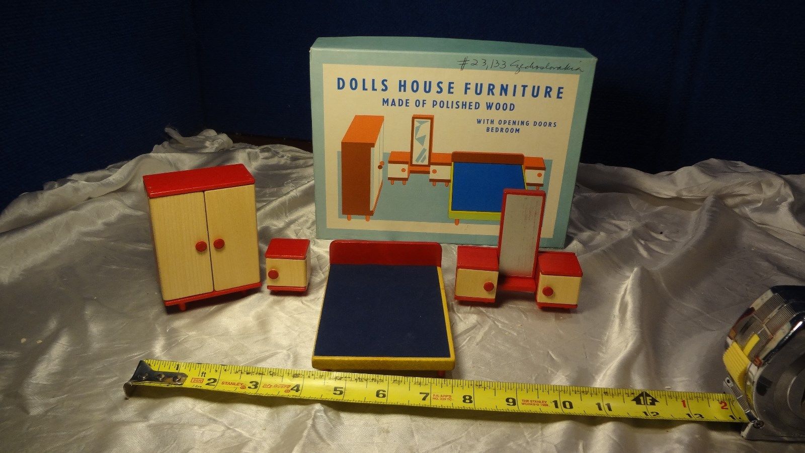 Title (ebay affiliate link): **MID-CENTURY MODERN** Vintage Doll House Furniture Wood Antique Toy Group #3