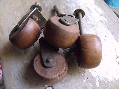 Nice Set of 4 Old Vintage Wood Castors Castor Wheels
