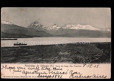 Title (ebay affiliate link): ARGENTINA PANORAMA DE USHUAIA TIERRA DEL FUEGO R. Rosauer POSTCARD 1903 AM010