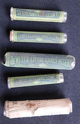 Lot of 5 DeWitt's Little Early Risers, E.C. Dewitt & Co Antique Bottles