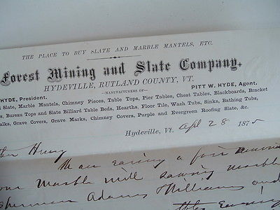 Title (ebay affiliate link): 1875 Forest Mining & Billiard Table MFG.,Hydeville,Vermont/PW.Hyde,signed letter