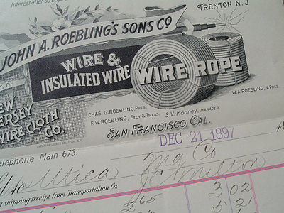 Title (ebay affiliate link): 1897 California GRAPHIC BUILDING of John A.Roebling's Sons Wire Rope MFG.,letter