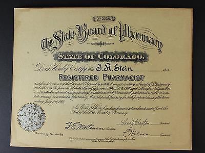 Title (ebay affiliate link): 1907 STATE BOARD OF PHARMACY STATE OF COLORADO REGISTERED PHARMACIST CERTIFICATE