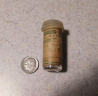 ANTIQUE GLASS PRESCRIPTION MEDICINE BOTTLE w/LABEL TROY DRUGS CO., N.Y.