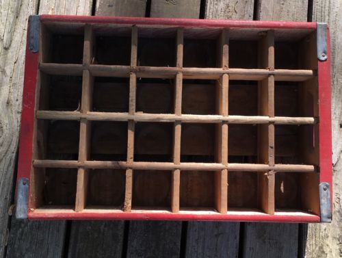 Title (ebay affiliate link): Coca-Cola COKE 24 Bottle Carrier Case Crate Wooden Wood Red White Vintage Box.