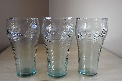 Coca - Cola Drinking Glasses Green Pebble Glass Bubble 16 oz - Set of 3