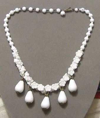 VTG White Milk Glass Floral Bead Choker Necklace / Adjustable Length - Germany