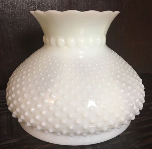 Title (ebay affiliate link): Antique Hurricane Oil Thick Ruffle Hobnail Milk Glass Lamp Shade 6 3/4"