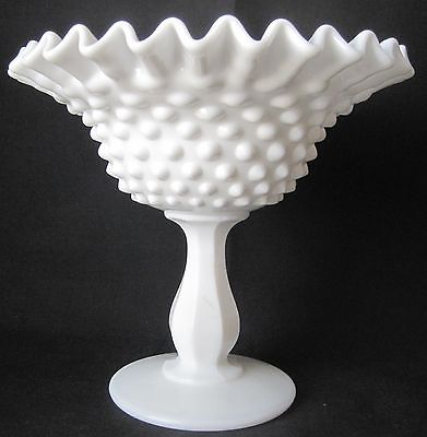 Vintage Fenton White MIlk Glass Hobnail Compote Dish