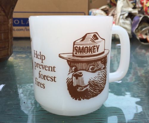 Title (ebay affiliate link): Smokey the Bear Fire Vintage Advertising White Milk Glass Mug Cup King Coffee