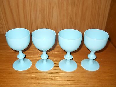 Vintage PORTIEUX VALLERYSTHAL 4 SKY BLUE OPAQUE MILK GLASS PEDESTAL CORDIAL