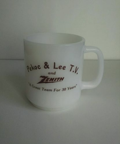 Vintage Advertising Milk Glass Mug PEKOC & LEE T.V. AND ZENITH Glasbake