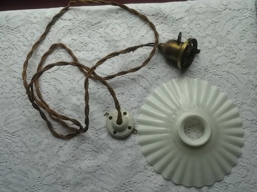 Title (ebay affiliate link): Antique GE ceiling Socket Brass Pendant light fixture VG steam punk milk glass