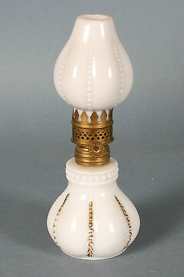 Antique Miniature Oil Lamp - Milk Glass with Gilt - S1-179