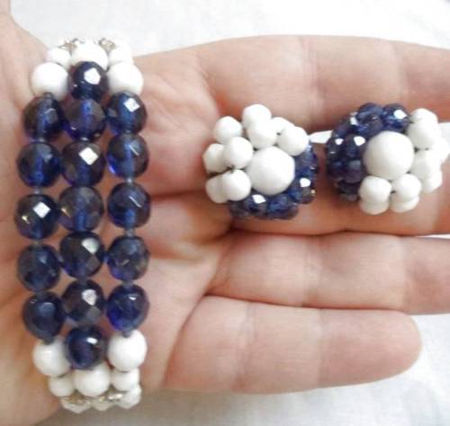 Title (ebay affiliate link): STUNNING VINTAGE ESTATE MILK GLASS BEAD WRAP BRACELET EARRINGS SET!!! 5128M