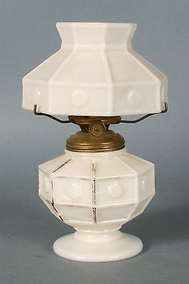 Antique Miniature Oil Lamp - Milk Glass Block and Dot - S1-191