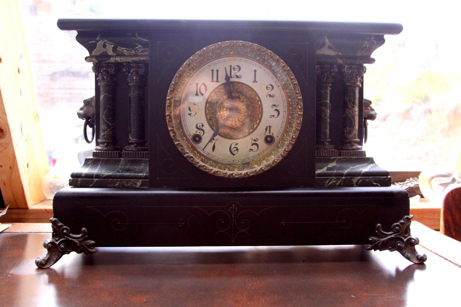 Title (ebay affiliate link): Antique Vintage Mantle Pillar/Lion Clock E. INGRAHAM Co. Bristol CONN USA