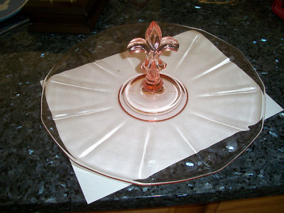 Title (ebay affiliate link): Pink Depression Glass Sandwich - Cookie Tray - Handle