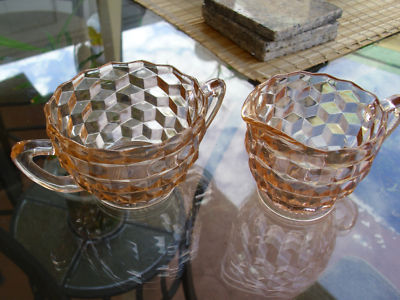 Title (ebay affiliate link): PINK GLASS SUGARBOWL & CREAMER OH SO CUTE SWEET Deppres