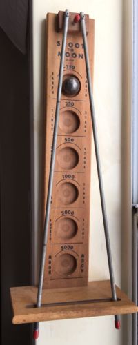 Title (ebay affiliate link): 1959 Drueke Shoot The Moon Steel & Wood Gravitation Game with Steel Ball
