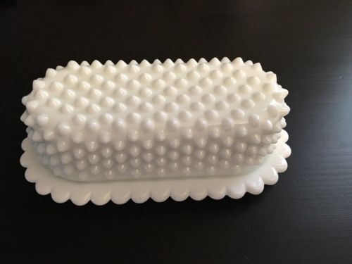 Vintage Fenton Hobnail Milk Glass Butter Dish