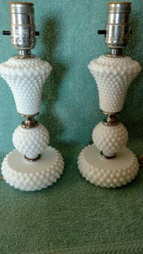 Title (ebay affiliate link): 2 Vintage White Milk Glass Hobnail Table Lamps Electric Light Student Lamp