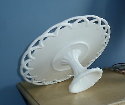 VINTAGE PITMAN DREITZER COLONY LACE WHITE MILK GLASS PEDESTAL CAKE PLATE STAND