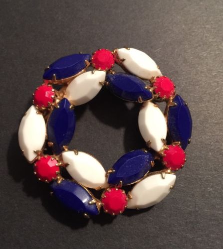Vintage Red/White/Blue Milk Glass Cabochon Brooch