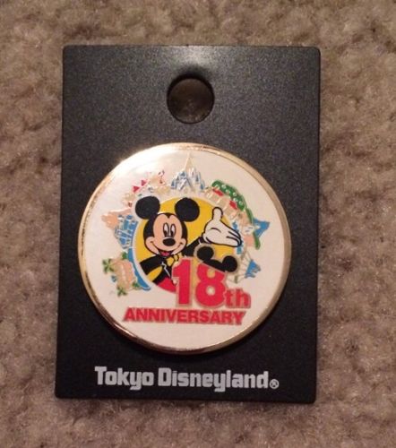 Title (ebay affiliate link): Tokyo Disneyland - 18th Anniversary - Mickey Mouse Pin - ON CARD