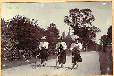 Title (ebay affiliate link): OLD BICYCLE PHOTOGRAPH EDWARDIAN LADY CYCLISTS IN PARK VINTAGE FASHION 1900-10