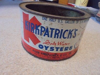 Title (ebay affiliate link): Vintage Kirkpatricks Salt Water Oysters 1/2 gallon tin Rehoboth, Delaware
