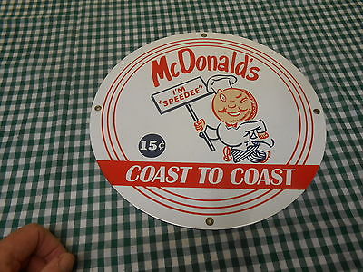 PORCELAIN MCDONALDS 15 cent COAST TO COAST SIGN 11 3/4 INCHES ACROSS ITEM NO 682