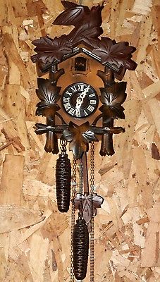 Title (ebay affiliate link): ANTIQUE RUNNING CARVED BLACK FOREST GERMAN 2 WEIGHT 30 HR. CUCKOO CLOCK W TOPPER