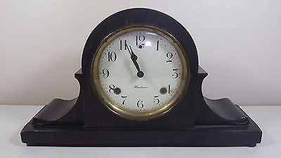 ANTIQUE/VINTAGE Dark Wood SESSIONS Hump Back SHELF Mantel CLOCK 8 Day KEY WIND