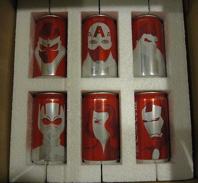 Title (ebay affiliate link): New Mini Marvel Coke Cans Complete Set Super Bowl Promo 6 pack RARE Coca Cola
