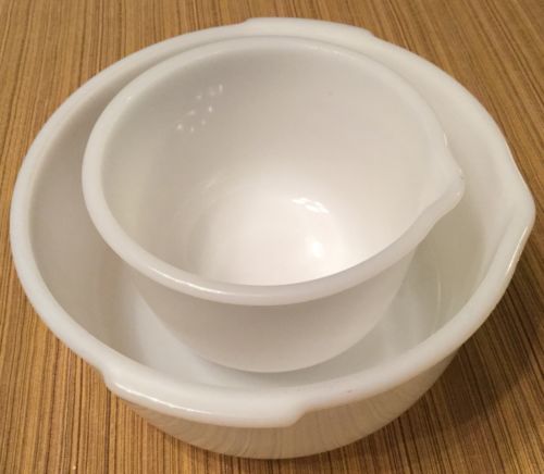 Vintage Set of 2 White Milk Glass GLASBAKE for SUNBEAM Mixmaster MIXING BOWLS