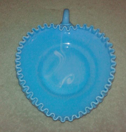 RARE VINTAGE Fenton Blue Swirl Milk Glass Ruffled Rim Hobnail Bon Bon Dish