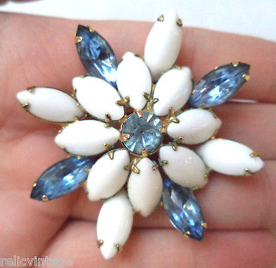 Title (ebay affiliate link): STUNNING VINTAGE ESTATE JULIANA D&E BLUE RHINESTONE MILK GLASS BROOCH!!! G9564