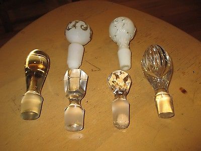 Title (ebay affiliate link): VINTAGE LOT 6 GLASS DECANTER PERFUME BOTTLE STOPPERS MILK GLASS (2)