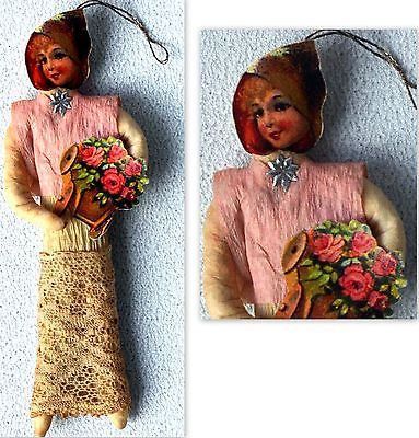 Title (ebay affiliate link): 1920 German Spun Cotton Young Girl Red Hood Holding Wagon w/Roses Dresden Star