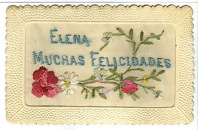 Embossed, Embroidery, In Spanish, "Elena, Muchas Felicidades", Congratulations