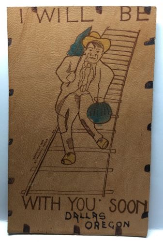 Title (ebay affiliate link): Antique LEATHER Postcard: I Will Be With You Soon - Dallas, Oregon - Hobo -1906